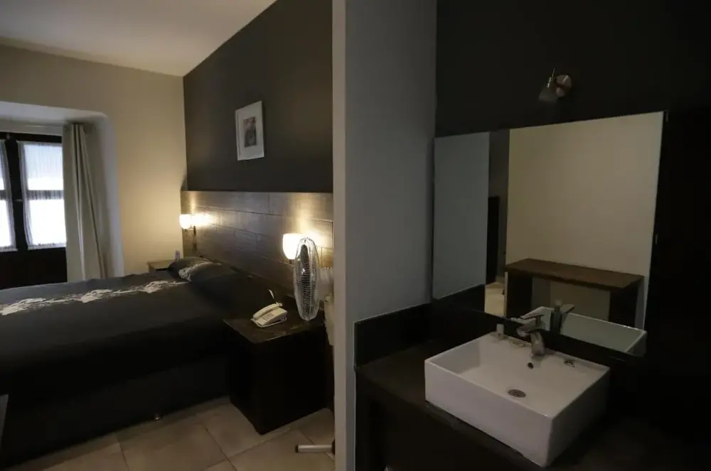 Sehr schlechte Reinigung, Böden sind dunkel und es ist schwer zu erkennen, ob sie sauber sind, aber in meinem Fall war die Dusche in einem schlechten Zustand und Wasser spritzte von oben und über die Glastür und hinterließ eine Pfütze auf dem Badezimmerboden, also musste ich den Boden trocknen und dabei wurde mir klar, dass das weiße Handtuch buchstäblich völlig schwarz wurde. Verursacht Unbehagen im Raum. Ich empfehle es nicht.